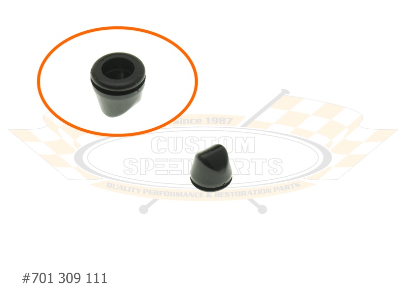 Bei Käfer, Karmann Ghia, Kübel (Typ-181) und Typ-3/34 ab '67 ist dieser kleine Wasserablauf im Rahmentunnel integriert. Käfer Cabrios haben sogar zwei davon. Diese Reproduktion entspricht dem Original und besteht ebenso aus Gummi.
