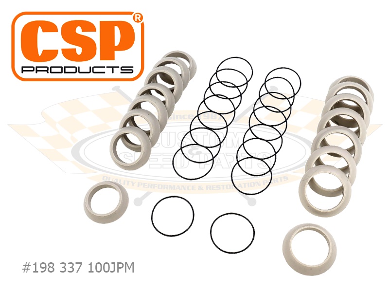 Dichtsatz für unsere CSP Products Typ-1 JPM Stößelschutzrohre. Der Satz enthält die Stößelschutzrohrdichtungen für Motorgehäuse und Zylinderköpfe sowie die inneren O-Ringe für das teleskopische Schutzrohr. Ausreichend für 8 Stößelschutzrohre.