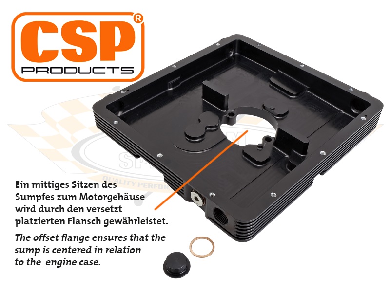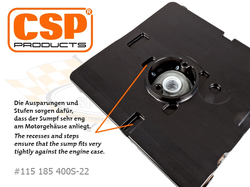 Die flachen CSP Products Typ-4 Zusatzölsümpfe sorgen durch ihre innovative Konstruktion für beste Ölkontrolle auch in extremen Kurvenlagen. Mit einem dachförmigen Schwallblech im inneren des zerlegbaren Gehäuses wird das Öl entschäumt und die Zirkulation optimiert. Dadurch wird sichergestellt, dass stets die bestmögliche Ölqualität am Saugrohr zur Ölpumpe entnommen wird.