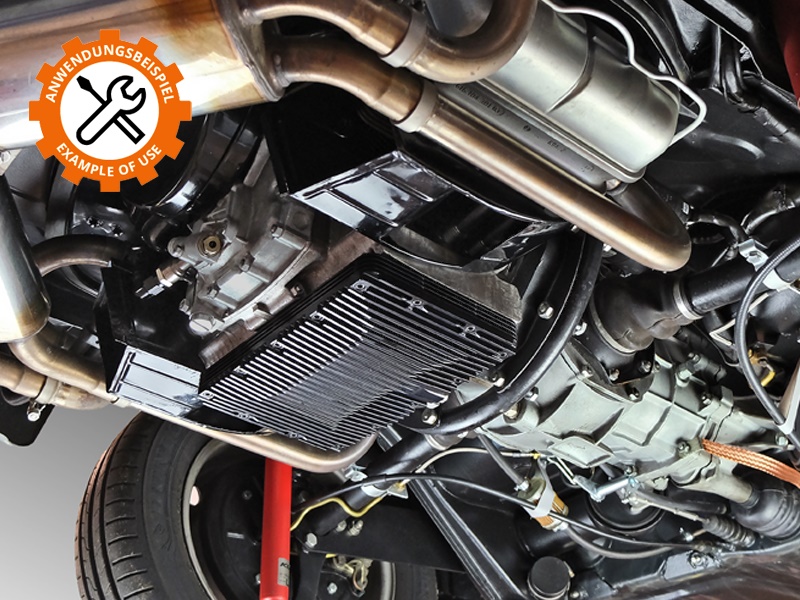 Die starke Verrippung des schwarz eloxierten Sumpfes hilft bei der Senkung der Öltemperatur und trägt zu einem geringen Gesamtgewicht bei. Mit ca. 26 mm wird die Bodenfreiheit nur geringfügig verringert. Gefiltert wird das Öl weiterhin mit dem originalen Ölsieb.