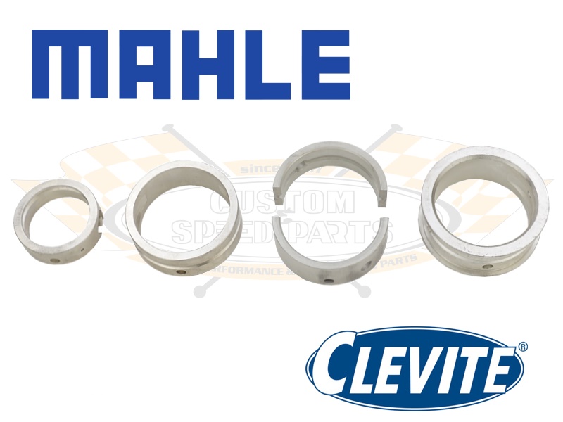 Komplette Kurbelwellen-Lagersätze in Mahle/Clevite Qualität für Typ-1 Motoren 12-1600ccm (ab 34PS) im VW Käfer, Karmann Ghia, Kübel (181), Typ-3 und Bus Typ-2 (T1und T2). Diese Lagersätze sind für überholte Motorgehäuse im 2. Übermaß (1.00 mm), Bundlager + 1 mm in Verbindung mit Kurbelwellen im Standardmaß oder mit überholten Kurbelwellen im Untermaß 0.25 mm, 0,50 mm und 0.75 mm. Auch diese Kurbelwellenlager werden mit einem mittleren Hauptlager in Stahlstütz-Ausführung geliefert.