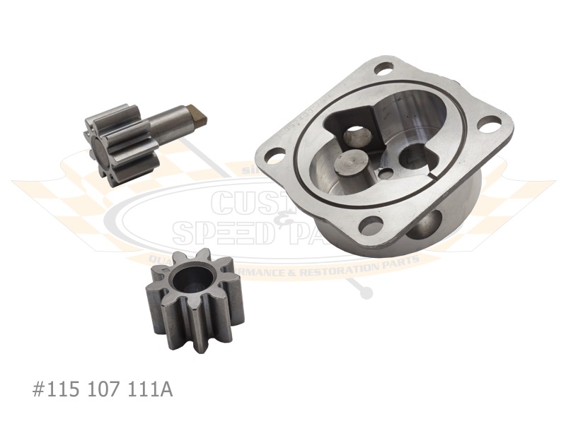 Ölpumpen für Typ-1 Motorgehäuse mit kleinen Ölkanälen und 8 mm Stehbolzen in Verbindung mit 3-Punkt Nockenwellen. Ölpumpen dieser Bauart waren werksseitig mit 21 mm Pumpenzahnrädern bei Typ-1 Motoren von 1968 bis 1969 im VW Käfer, Karmann Ghia, Kübel (181), Typ-3 und Bus Typ-2 (T2) verbaut. Für Motoren, die eine höhere Föderleistung benötigen, ist eine verstärkte Ausführung mit 26 mm Zahnrädern lieferbar.