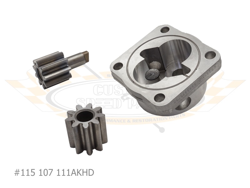 Ölpumpen für Typ-1 Motorgehäuse mit großen Ölkanälen und 8 mm Stehbolzen (ab 1970) in Verbindung mit 3-Punkt Nockenwellen. Diese Ölpumpen waren werksseitig mit 21 mm Pumpenzahnrädern bei Typ-1 Motoren der Modelljahre 1970 bis 1971 im VW Käfer, Karmann Ghia, Kübel (181), Typ-3 und VW Bus Typ-2 (T2) verbaut. Die verstärkten Ölpumpen dieser Bauart mit 26 mm oder 30 mm Zahnrädern sind insbesondere für die Verwendung mit vielen Tuning-Nockenwellen interessant. Diese Pumpen mit erhöhter Förderleistung lassen sich zusammen mit allen 3-Punkt Nockenwellen (Typ-1 Standard '61- sowie Sportnockenwellen z.B. Engle, JPM, SCAT in modernen Motorgehäusen verbauen.