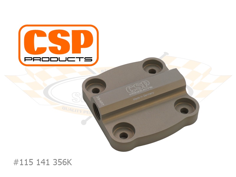 Unsere in Deutschland gefertigten CSP Products Aluminium Ölpumpendeckel für Porsche 356 Motoren sind mit 3/8-NPT Gewinde und zusätzlichem Überdruck-Regelventil versehen.