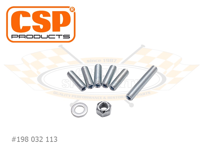 Dieser CSP Products Stehbolzensatz für den Ölsiebdeckel ist in zwei Varianten erhältlich. Einmal für frühe Typ-1 Maschinen, den sogenannten 24,5 und 30 PS Motoren, sowie einen für Typ-1 Triebwerke von 1200 bis 1600 Kubikzentimeter Hubraum.