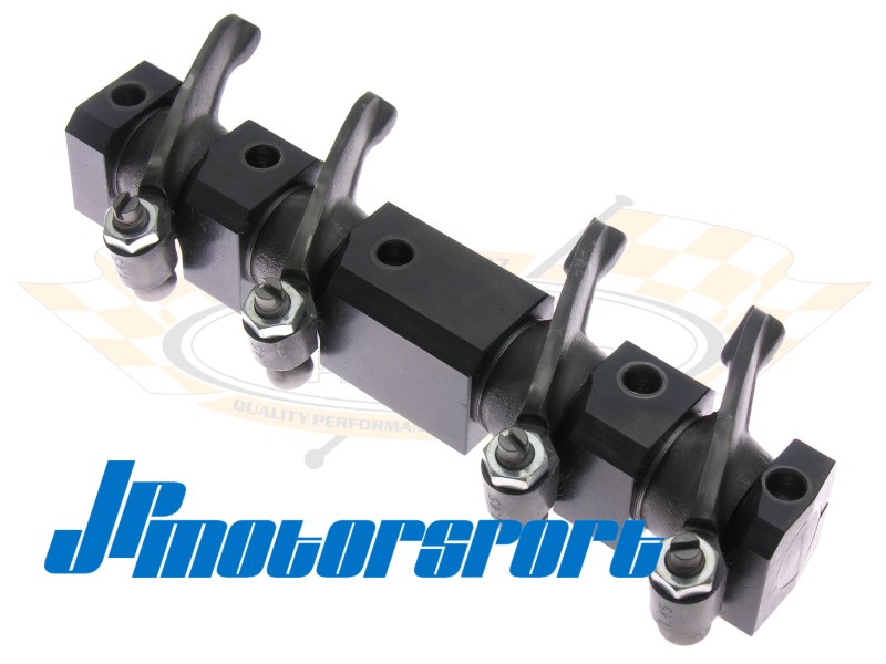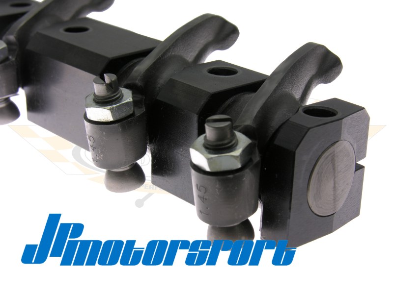 Die von JPM eigens hergestellten Kipphebel bestehen aus geschmiedetem Orvar Supreme, einem ESU-Warmarbeitsstahl, der zusätzlich diffusionsgeglüht wird und sind mit Übersetzungen von 1:1.45 bis 1:1.60 erhältlich. Die ebenfalls im Satz enthaltenen Wellen haben einen Durchmesser von 20 Millimetern und sind aus vergütetem Werkzeugstahl gefertigt. Bei den Einstellschrauben kommt vergüteter H13 Stahl zum Einsatz. JPM Kipphebelwellen können ausschließlich auf JPM-Zylinderköpfen verbaut werden.