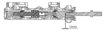 Ebenso muss nach dem Austausch des Hauptbremszylinders das Spiel der Betätigungsstange und dem Kolben des HBZ überprüft und eingestellt werden. Dieses Spiel soll laut Herstellerangaben 1mm betragen. Ggf muss zum Erreichen dieses erforderlichen Spiels die Betätigungsstange gekürzt werden.