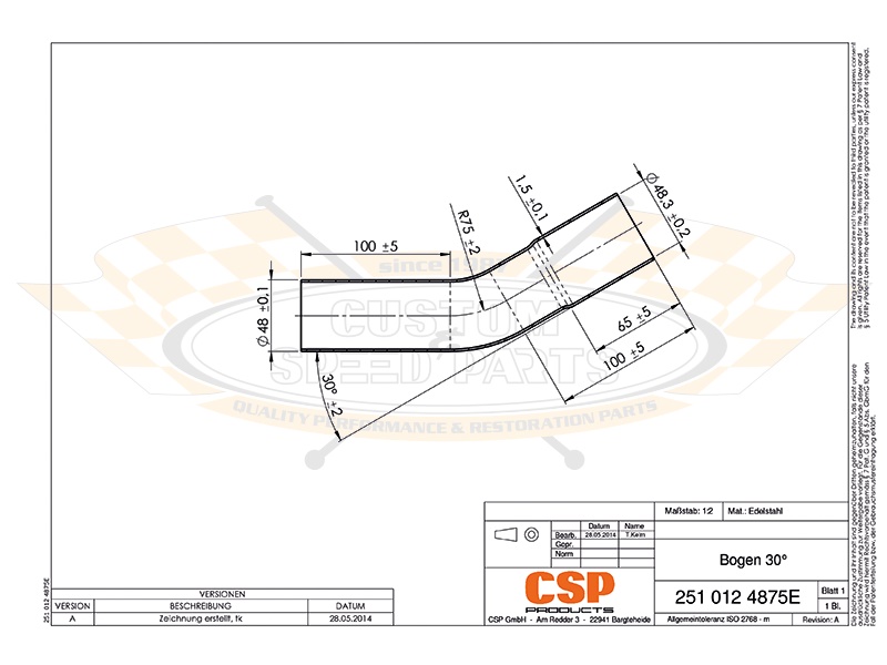 Rohrbogen 30° 48mm - Edelstahl mit Steckmuffe 251 012 4875E |