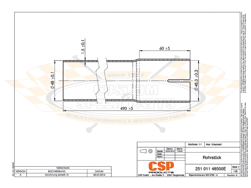 Rohrstück 490mm 48mm - Edelstahl mit Steckmuffe 251 011 48500E |