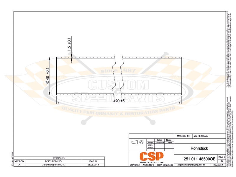 OEM: UC14850R, Rohrstücke, Auspuffrohr, Auspuffrohre, Auspuff Rohr gerade, mit Muffe, 25101148500E, 485 251 01100E, 48525101100E, 485-251-01100E, UC14850S, ohne Muffe, 25101148500OE, 485 251 01100OE, 48525101100OE, 485-251-01100OE