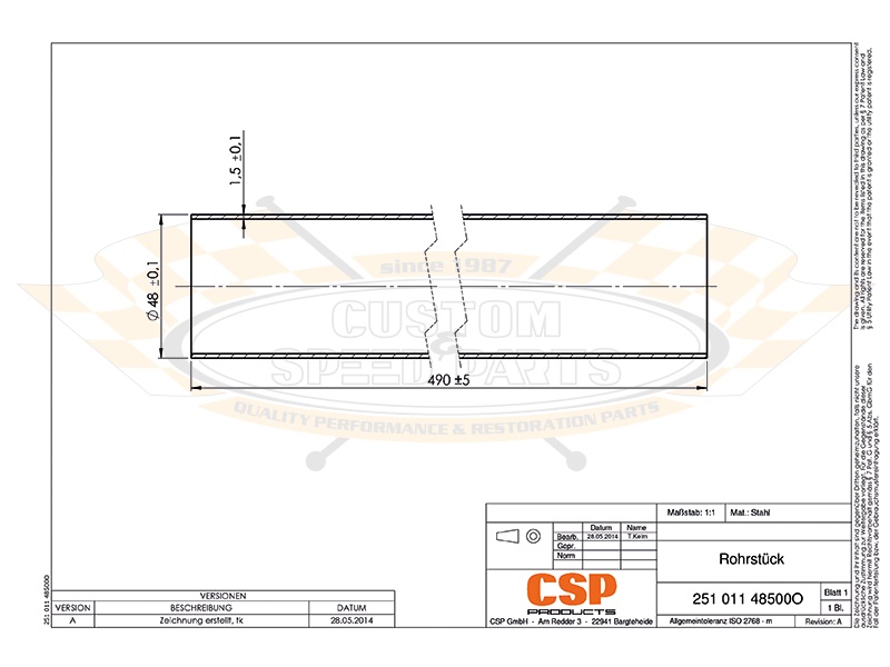 OEM: UC14850, Rohrstücke, Auspuffrohr, Auspuffrohre, Auspuff Rohr gerade, mit Muffe, 25101148500, 485 251 01100, 48525101100, 485-251-01100, UC14850U, ohne Muffe, 25101148500O, 485 251 01100O, 48525101100O, 485-251-01100O