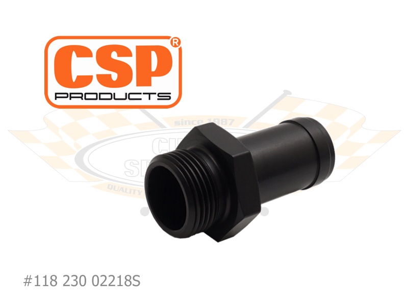 Der CSP Products Schlauchanschluss mit M22x1,5 Gewinde ist per CNC-Technik aus Aluminium gefertigt und wahlweise naturfarben oder schwarz eloxiert. Das ultraleichte Fitting eignet sich für Schlauch mit 18 mm Durchmesser und passt perfekt zu den CSP Products aus der Ölsystem-Serie.