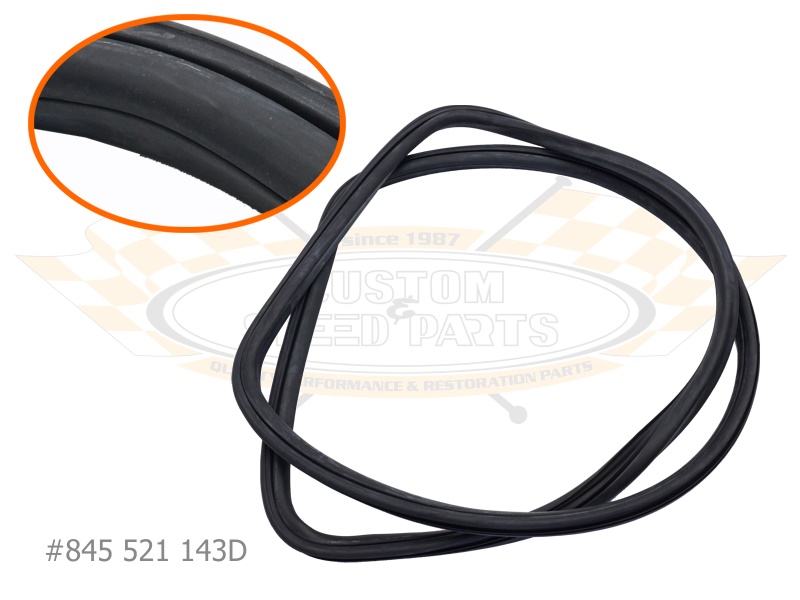 Heckscheibendichtung für VW Karmann Ghia Typ 14. Variante 845 521 143A passt für Baujahre 1956 bis 1966 mit Zierleiste im C Profil und ersetzt verhärtete oder undichte Originale für eine zuverlässige Abdichtung. Für Fahrzeuge von 1966 bis 1974 mit Zierleiste im T Profil ist die Dichtung 845 521 143D die richtige Wahl. Beide Ausführungen sind passgenau gefertigt, erleichtern die dichte und saubere Montage der Heckscheibe und eignen sich ideal für Restauration und Austausch.