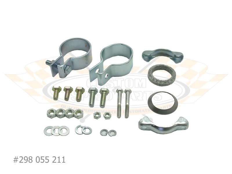Dieser Anbausatz enthält sämtliche Dichtungen, Schrauben und andere Kleinteile, die zur Montage des Dämpfer- und Endrohrs am VW Typ-2 Bus (T1 und T2) von '63 bis '71 notwendig sind.