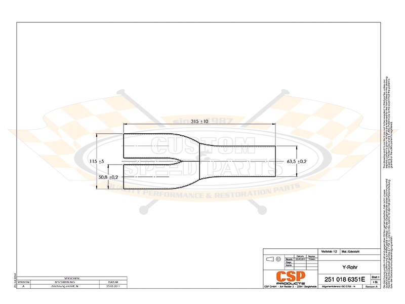 Y-Stück A=2.5'' B=2'' Edelstahl 1.4301 ohne Steckmuffe 251 018 6351E |