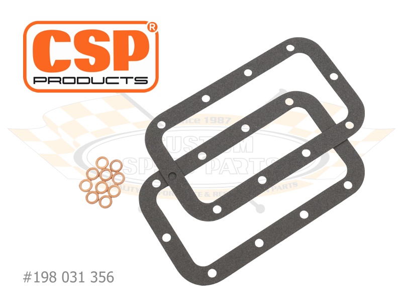 CSP Products Ölwechsel Dichtsätze enthalten immer maßgefertigte Dichtungen und Vollkupfer-Dichtringe für beste Abdichtung. Dieser Ölsumpfdichtsatz besteht aus 2 Papierdichtungen für Ölsieb und Ölsiebdeckel sowie 10 Kupferdichtringen. Der Satz ist passend für alle Porsche 356/912 Motor mit 3-teiligem Motorgehäuse.