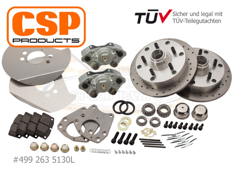 Für alle Typ-2 Bus (T1 und T2) von Baujahr '50 bis '70 sind diese CSP Products Vorderachs-Scheibenbremsanlagen im beliebten Lochkreis 5x130 (auch als Porsche-Lochkreis bekannt) geeignet. Sie zeichnen sich durch enorme Zuverlässigkeit und ihre TÜV-Zulassung aus.