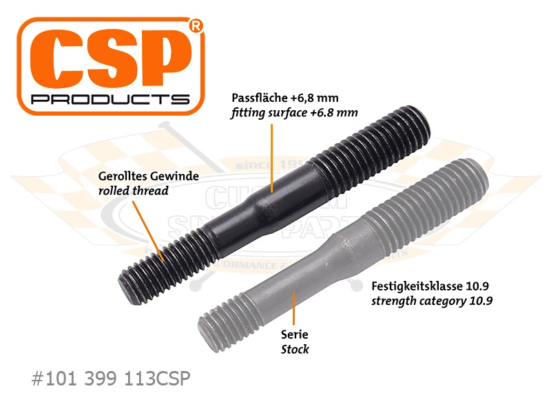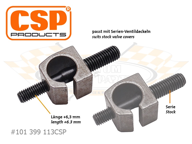 Diese langen CSP Products Stiftschrauben sind zur Verwendung mit unterlegten Kipphebelböcken bei Typ-1 und WBX Motoren gedacht. Sie sind bezüglich Güte und Qualität Originalteilen ebenbürtig und werden selbstverständlich in Deutschland gefertigt.