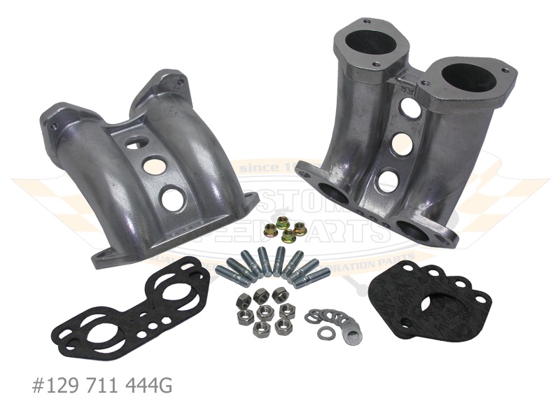 Diese Typ-4 Saugrohre sind speziell für unser Typ-1 Gebläsesystem abgestimmt. Sie eignen sich für Weber IDF oder Dellorto DRLA Vergaser bis zu einem Durchmesser von 44 mm und haben einen Universalflansch, der auch für die 2 Liter VW-Porsche Zylinderköpfe passt. Für größere Vergaser ist eine Kanalbearbeitung erforderlich.
