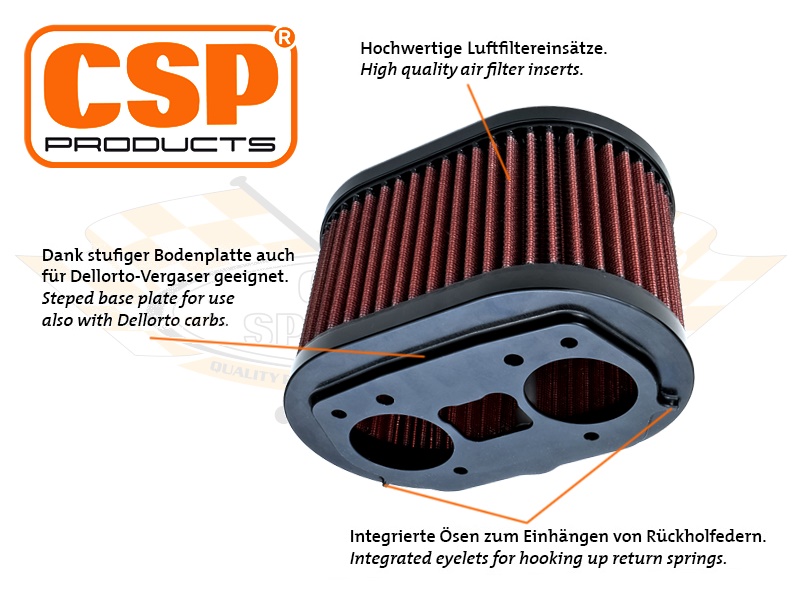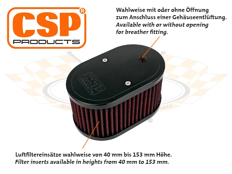 Die CSP Products Luftfilter mit dem klassischen CSP Products Logo sind in unterschiedlichen Varianten erhältlich und konfigurierbar, damit kaum ein Kundenwunsch unerfüllt bleibt.