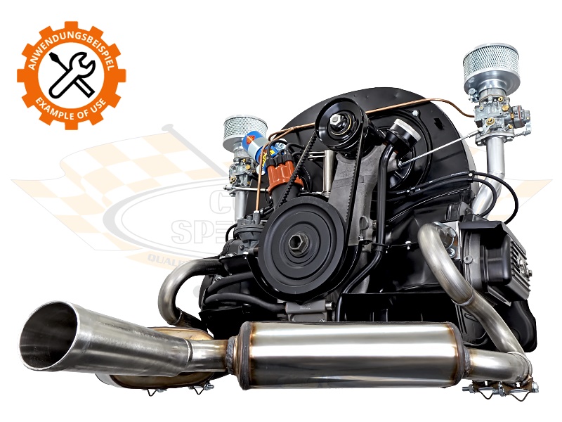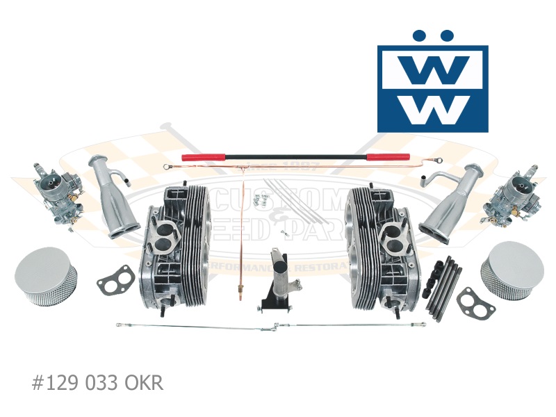 Neben den zwei Solex 32PBIC Vergasern mit passenden Naßluftfiltern besticht diese Anlage vor allem durch die zwei Spezial-Zylinderköpfe, die schon in den 50er Jahren vielen 22KW/30PS Motoren zu mehr Leistung verhalfen. Diese speziell gegossenen Zylinderköpfe mit großflächiger Verrippung und optimierter Kühlluftführung bieten eine ideale Wärmeableitung, die der erhöhten Verdichtung auf 7,5:1 gerecht wird.