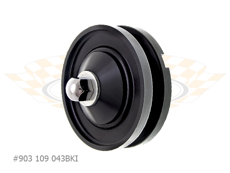 Diese schwarz eloxierte Aluminium-Riemenscheibe für VW Typ-1 Motoren ist wie das Original zweiteilig ausgeführt. Durch die Herstellungweise ist ein idealer Rundlauf garantiert.