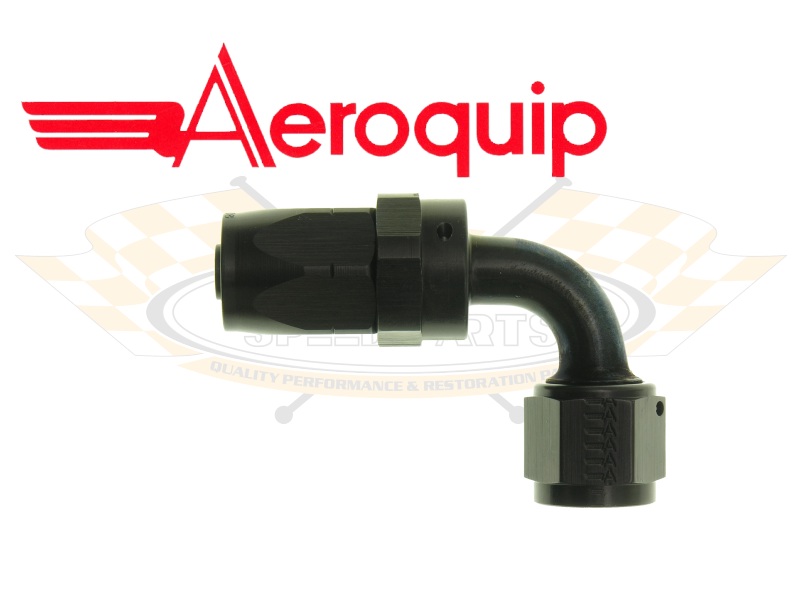 90° Aeroquip Schlauchanschlüsse aus schwarz eloxiertem Aluminuim.