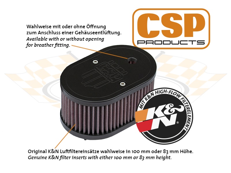 Die CSP Products Luftfilter mit dem CSP Products Wappen sind in unterschiedlichen Varianten erhältlich und konfigurierbar, damit kaum ein Kundenwunsch unerfüllt bleibt.