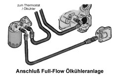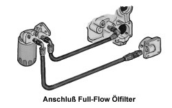 Eine gute Ölfilterung verlängert die Lebensdauer Ihres Motors erheblich, da das originale Ölsieb nur größere Partikel von der Ölpumpe fernhält. Das Full-Flow System ist die bestmögliche Filterung, da hier das Öl direkt von der Ölpumpe zum Ölfilter gelangt und so unabhängig vom Betriebszustand des Motors gefiltert wird.