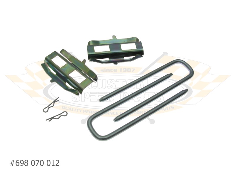 Bremsklotz-Anbausatz für GIRLING Bremssättel an der Vorderachse beim VW Käfer und Karmann Ghia (Typ-14) ab1973. Der Satz besteht aus 2 Spreizfedern 2 Haltebügeln und 2 Sicherungsfedern ausreichend für ein Fahrzeug.