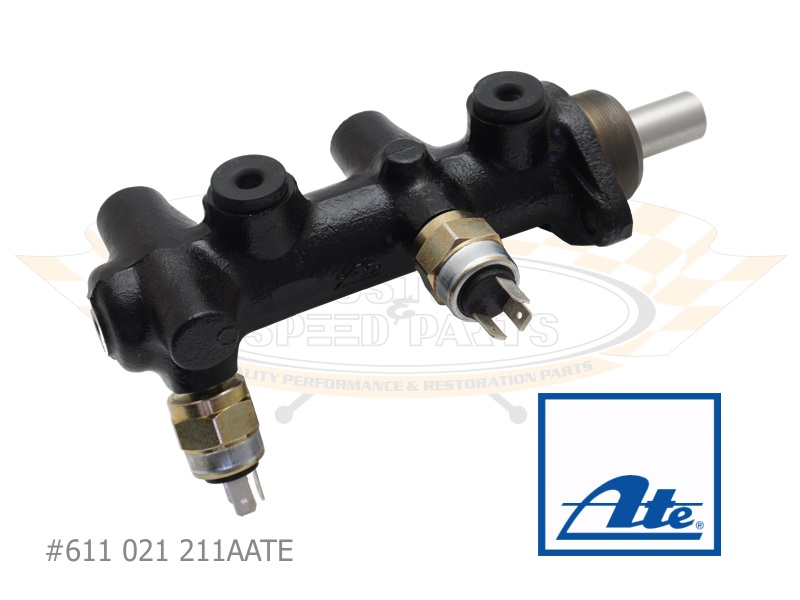 Dieser hochwertige ATE Hauptbremszylinder passt an VW Typ-2 Bus (T2) von '71 bis '79 mit ATE Bremskraftverstärker, kurz BKV und wird mit den abgebildeten Schaltern geliefert.