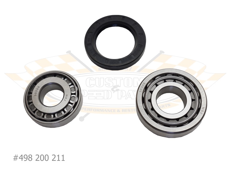 Jeder Radlagersatz enthält ein inneres und äußeres Lager, Lagerschalen sowie einen Dichtring für eine Seite. Er ist passend für Typ-2 Bus (T1) von '55 bis '67.
